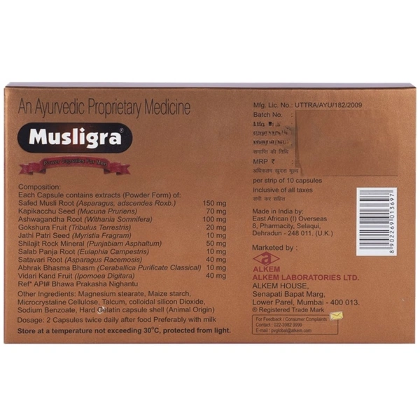 Alkem Musligra Capsules (10Caps) – Pure Musli Power for Vitality | AyushPharmacy.com