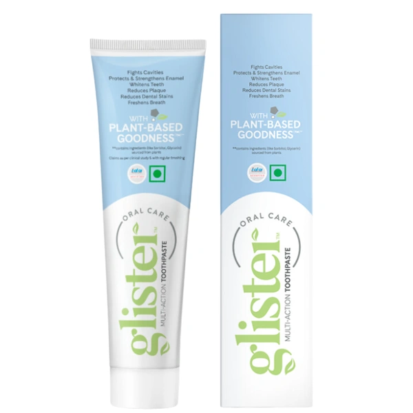You can choose from Glister Multi-Action Toothpaste that cleans teeth gently and effectively, combats cavities, and helps to reduce plaque up to 55% in 10 days* (according to clinical study & with regular brushing), and whitens teeth.