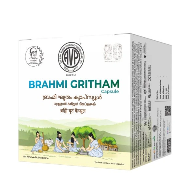 Arya Vaidya Pharmacy (AVP) Brahmi Gritham capsules (100Caps) 100% genuine product.