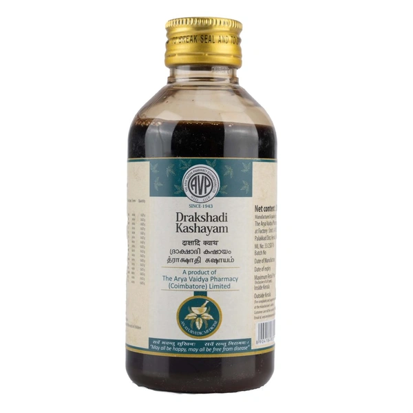 Information about Arya Vaidya Pharmacy (AVP) Drakshadi Kashayam (200ml):