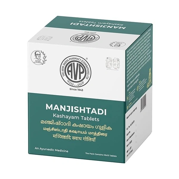 Arya Vaidya Pharmacy (AVP) Manjishtadi Kashayam Tablets (100tab) 100% genuine product.