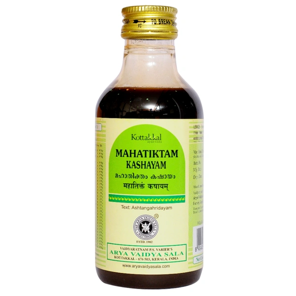Arya Vaidya Sala Kottakkal Mahatiktam Kashayam (200ml) 100% genuine product.