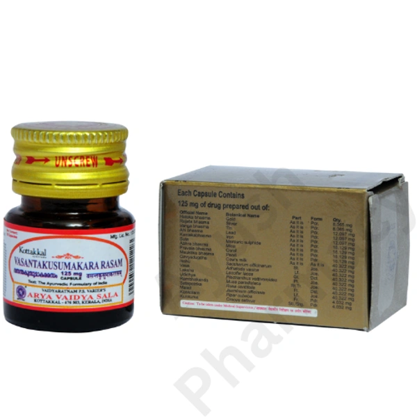 Arya Vaidya Sala Kottakkal Vasantakusumakararasam 125 Mg Capsule (10caps) 100% genuine product.