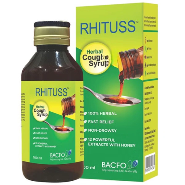 RHITUSS Cough Syrup (100ml) is made entirely from herbal ingredients, offering quick help for cough, cold, and lung infections. This syrup is designed to be non-drowsy, calming throat irritation, helping your body cough up mucus, and giving your immune system a lift all at once.