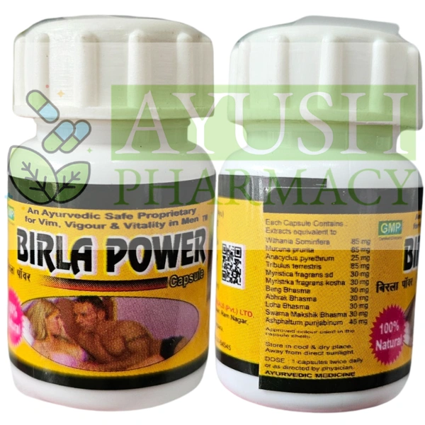 Birla Power Capsules premium herbal power capsules enhance stamina, energy and sexual power. These capsules work to enhance blood flow, increase testosterone, and boost endurance so you can perform at your best, thanks to a concentrated plant combination.