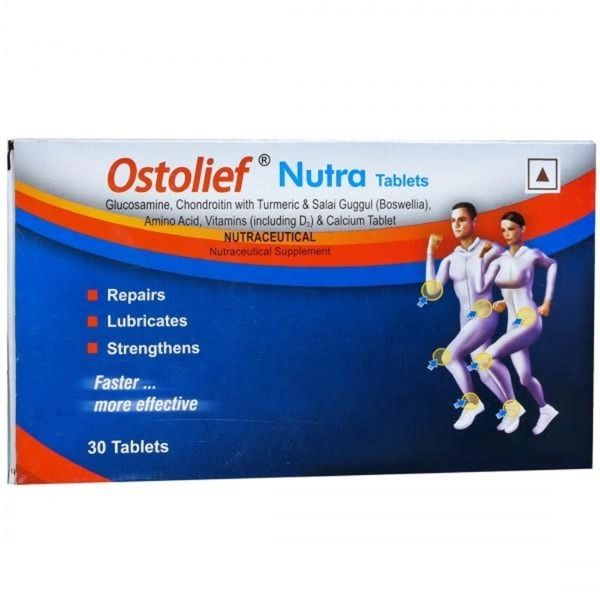 OSTOLIEF NUTRA TABLETS is a rational combination of herbo-mineral & nutritional supplements. Herbs like Haridra are strong anti-inflammatory, analgesic and anti arthritic agents. Shallaki contains boswellic acid as the active ingredient which has analgesic (pain-relieving) and anti-inflammatory properties. Glucosamine hydrochloride takes care of the health of the cartilage. Chondroitin sulphate & Calcium provide the essential building blocks necessary for the creation of the joint.