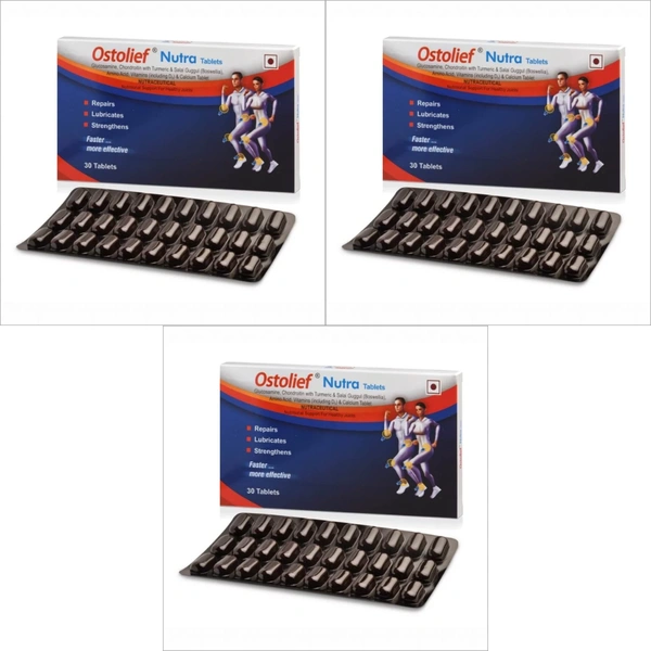 OSTOLIEF NUTRA TABLETS is a rational combination of herbo-mineral & nutritional supplements. Herbs like Haridra are strong anti-inflammatory, analgesic and anti arthritic agents. Shallaki contains boswellic acid as the active ingredient which has analgesic (pain-relieving) and anti-inflammatory properties. Glucosamine hydrochloride takes care of the health of the cartilage. Chondroitin sulphate & Calcium provide the essential building blocks necessary for the creation of the joint.