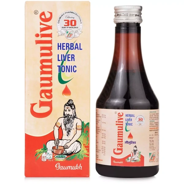 Gaumolive Herbal Liver Tonic is a specially made Ayurvedic drink created to help your liver stay strong and to keep digestion running smoothly. Manufactured by Gaumukh Pharmaceuticals—who have spent 35 years perfecting their craft—this tonic uses time-tested plants that help the liver clear out impurities and feel refreshed.