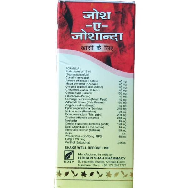 Information about H. Dhari Shah Pharmacy Josh-I-Joshanda Cough Syrup 200ml: