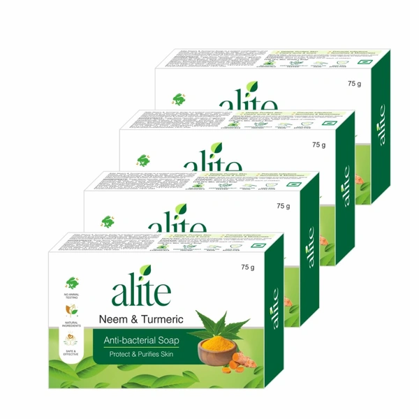 Leeford Alite Neem & Turmeric Soap- Pack of 4 (75g each), Anti-Bacterial Soap for Bath,Helps in Dark spots & Skin itching relief, Acne & Tan Removal |For Men and Women|g is 100% genuine product.