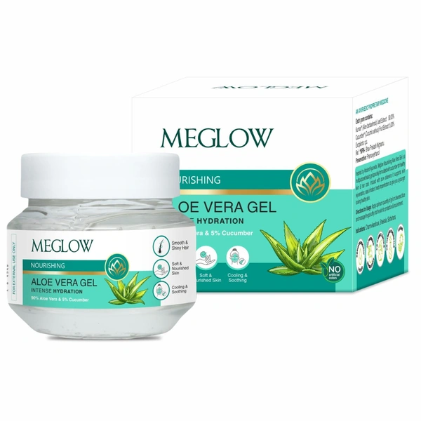 Meglow Aloevera Gel with 90% Aloevera & 5% Cucumber Ext. | For Face, Skin & Hair | Paraben & Silicon Free - 100g is 100% genuine product.