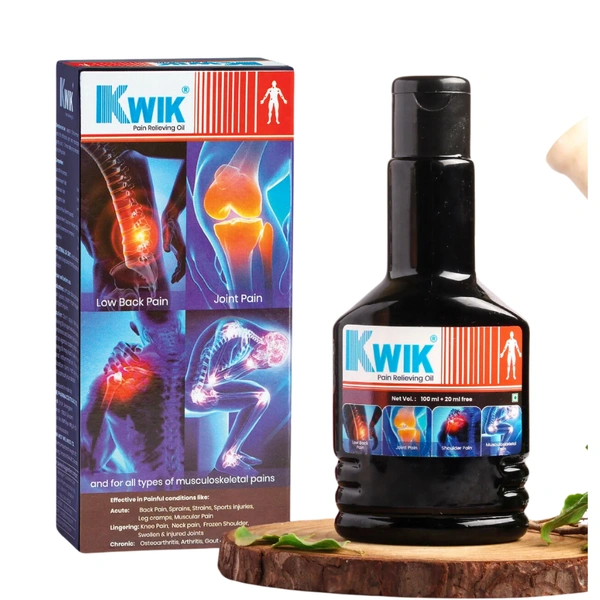 KWIK Pain Relieving Oil - Ayurvedic, For Shoulder, Joint, Muscle & Lower Back Pain, 100 ml (Get 20 ml Extra) 100% genuine product.