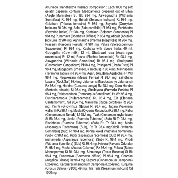 Ayurveda Grandhaktha Oushadi Composition: Each 1000 mg soft