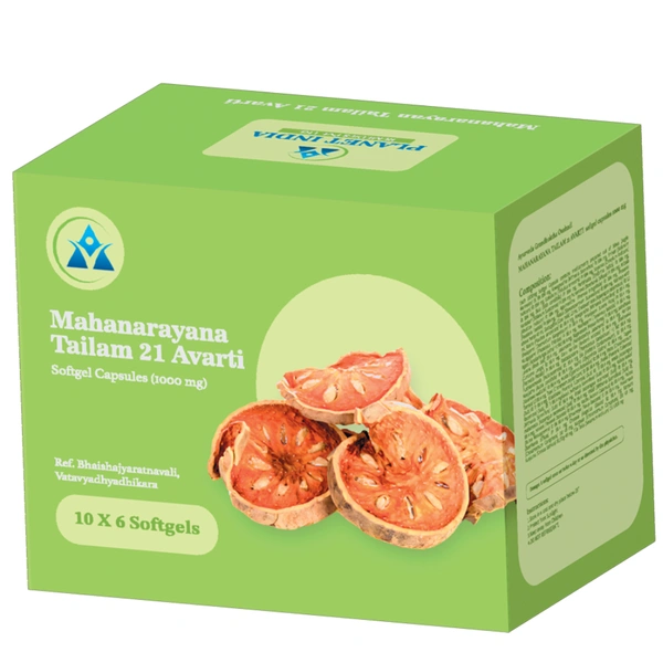 Planet India Mahanarayana Tailam 21 avarti 1000mg Soft Gel Capsules (60Caps) 100% genuine product.