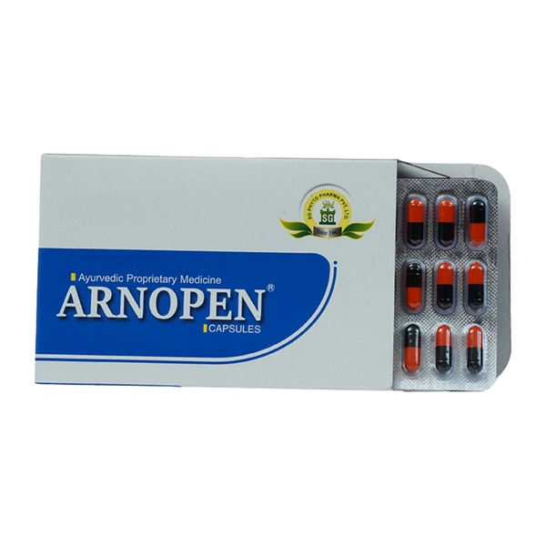 Arnopen Capsule is an ayurvedic formulation that can help manage inflammatory concerns in joints and muscles. It may help regulate blood circulation and functional improvement. Arnopen capsule may help manage morning stiffnessArnopen Capsule is an ayurvedic formulation that can help manage inflammatory concerns in joints and muscles. It may help regulate blood circulation and functional improvement. Arnopen capsule may help manage morning stiffness, mobility, and grip strength., mobility, and grip strength.