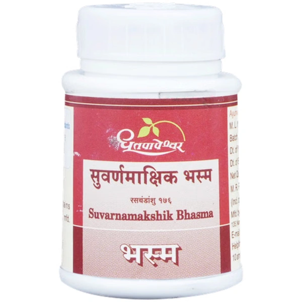 Dhootapapeshwar SwarnMakshik Bhasma is a classical Ayurvedic mineral preparation made from purified copper and iron pyrite. It is renowned for its various therapeutic benefits including support for blood health, skin conditions, and digestive wellness.