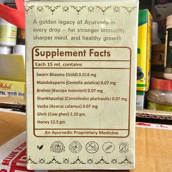 Vaidban Gold Prashana Drops combine pure 24CT Swarna Bhasma with handpicked natural herbs to nurture your child's growth. Rooted in the timeless science of Ayurveda, these drops strengthen immunity, sharpen memory, and encourage balanced overall development without any synthetic additives. The gentle formulation is completely free from colors, preservatives, and chemicals, making it safe for little ones.